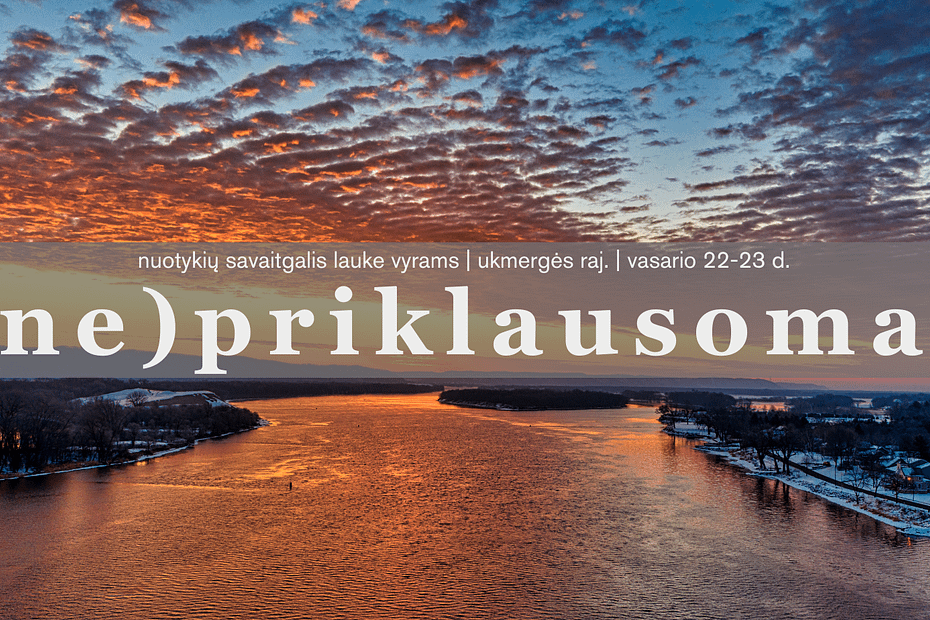 Snieguotą vasario pabaigą į nuotykį lauke prie Šventosios, Ukmergės rajone susirinko grupė vyrų. Nuėjom daugiau nei 30 km, aplankėm įspūdingų vietų, daug bendravom, valgėm, šildėmės pirtyje, miegojome palapinėje prie -7 laipsnių, klausėmės refleksijų, diskutavom, grožėjomės gamta ir, svarbiausia, bent porai dienų sustabdėme laiką.